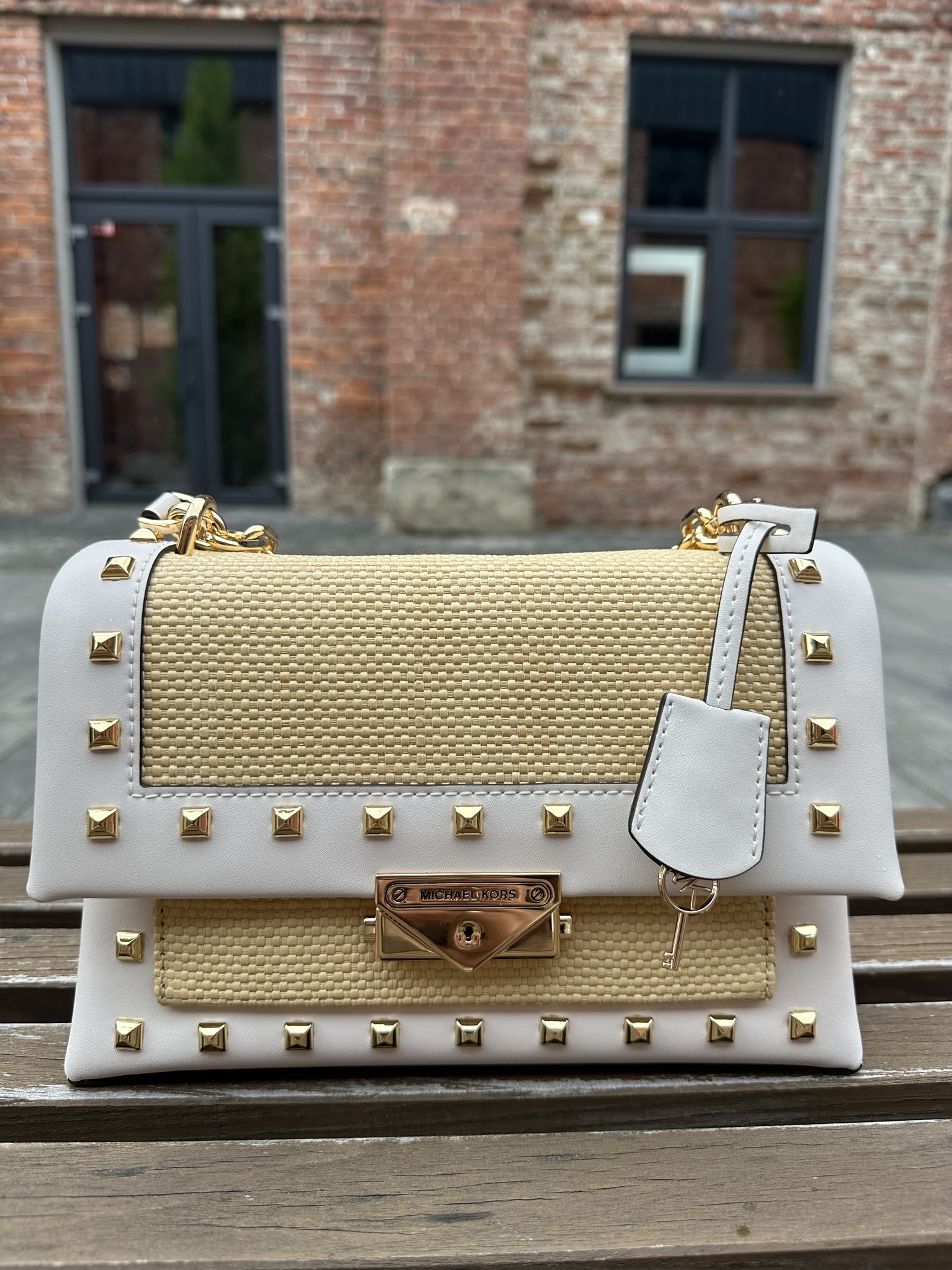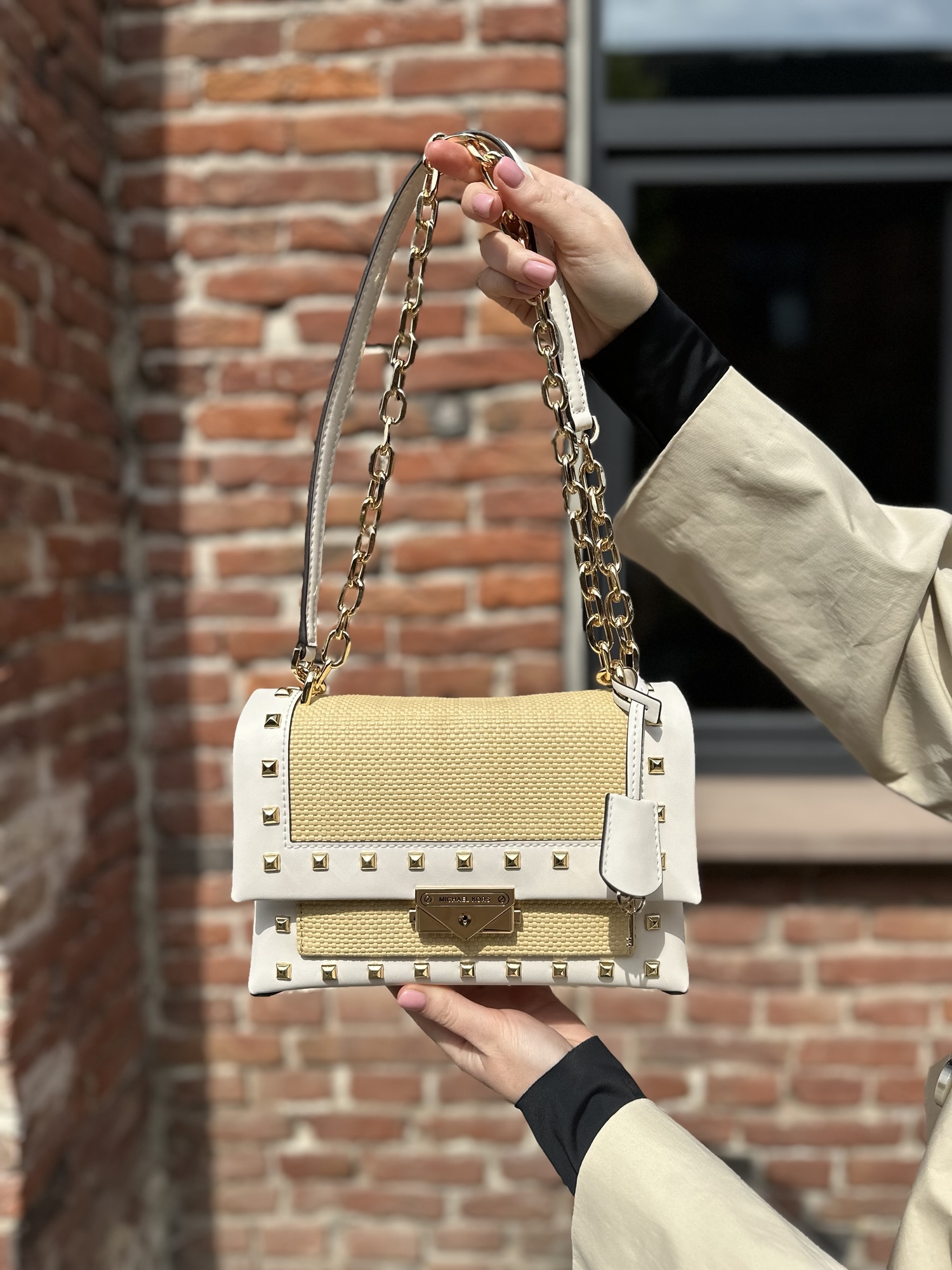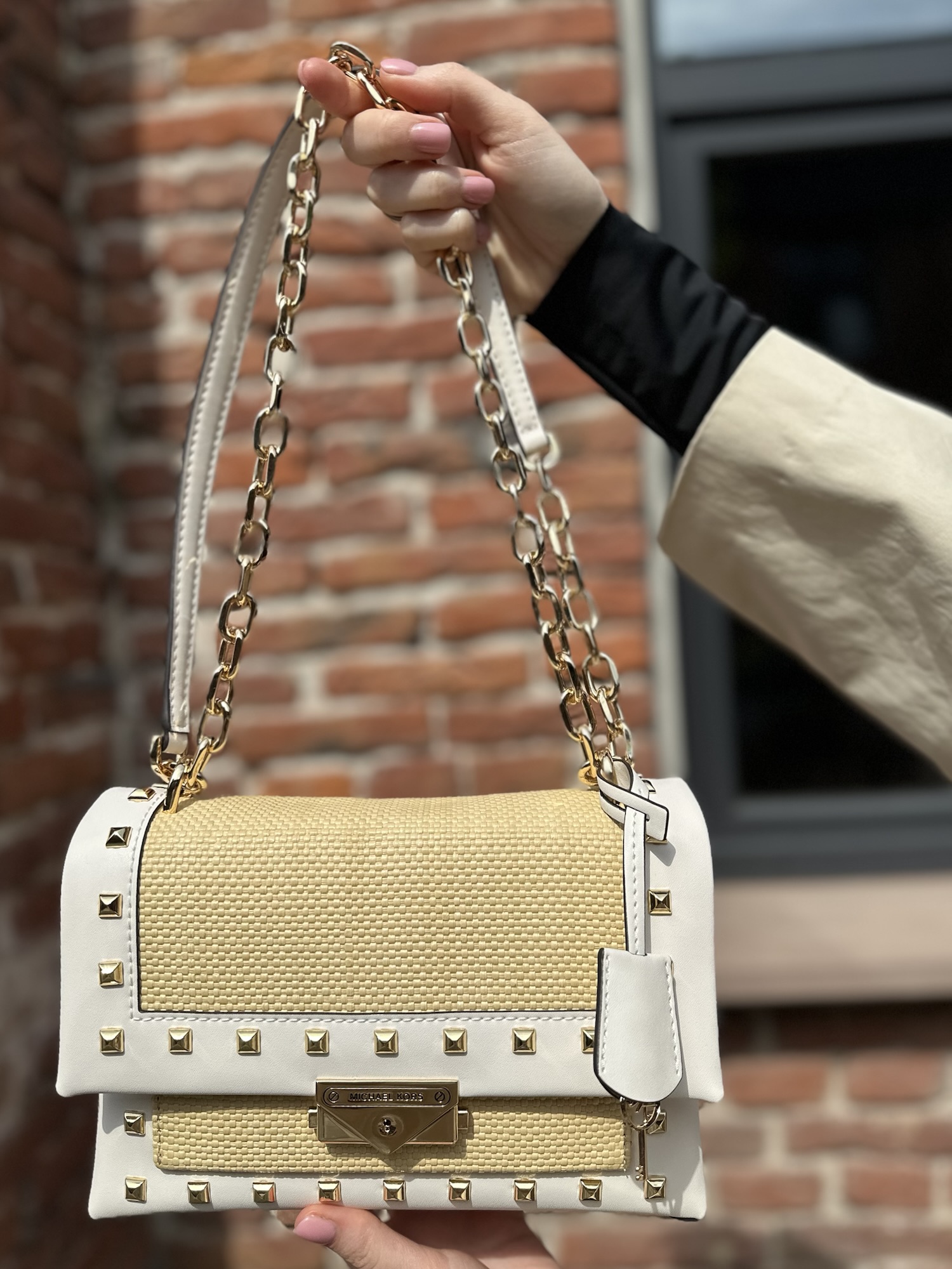 Cece Medium Straw and Studded Shoulder Bag – жіноча сумочка Michael Kors у плетеному дизайніНаявність: 1 в наявності