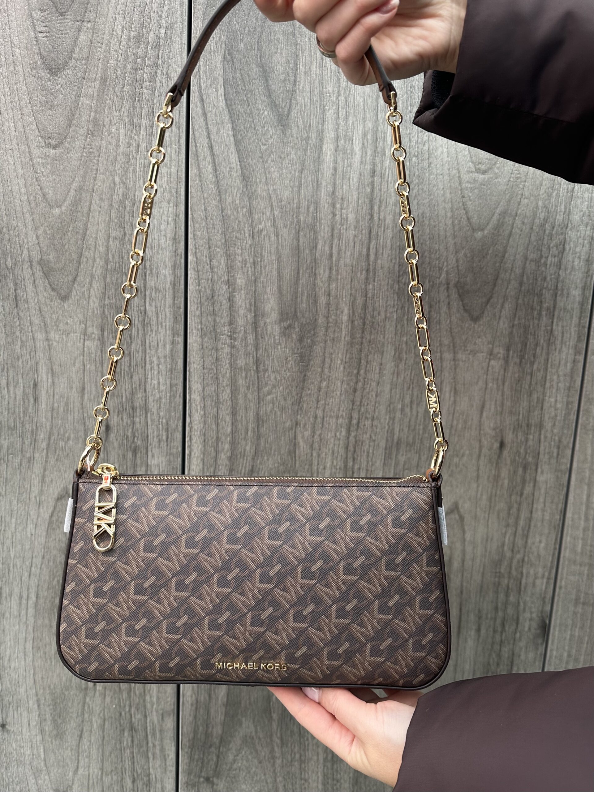 Empire Medium Chain-Link Pochette – жіноча сумочка Michael Kors з ексклюзивним коричневим логопринтомНаявність: 1 в наявності