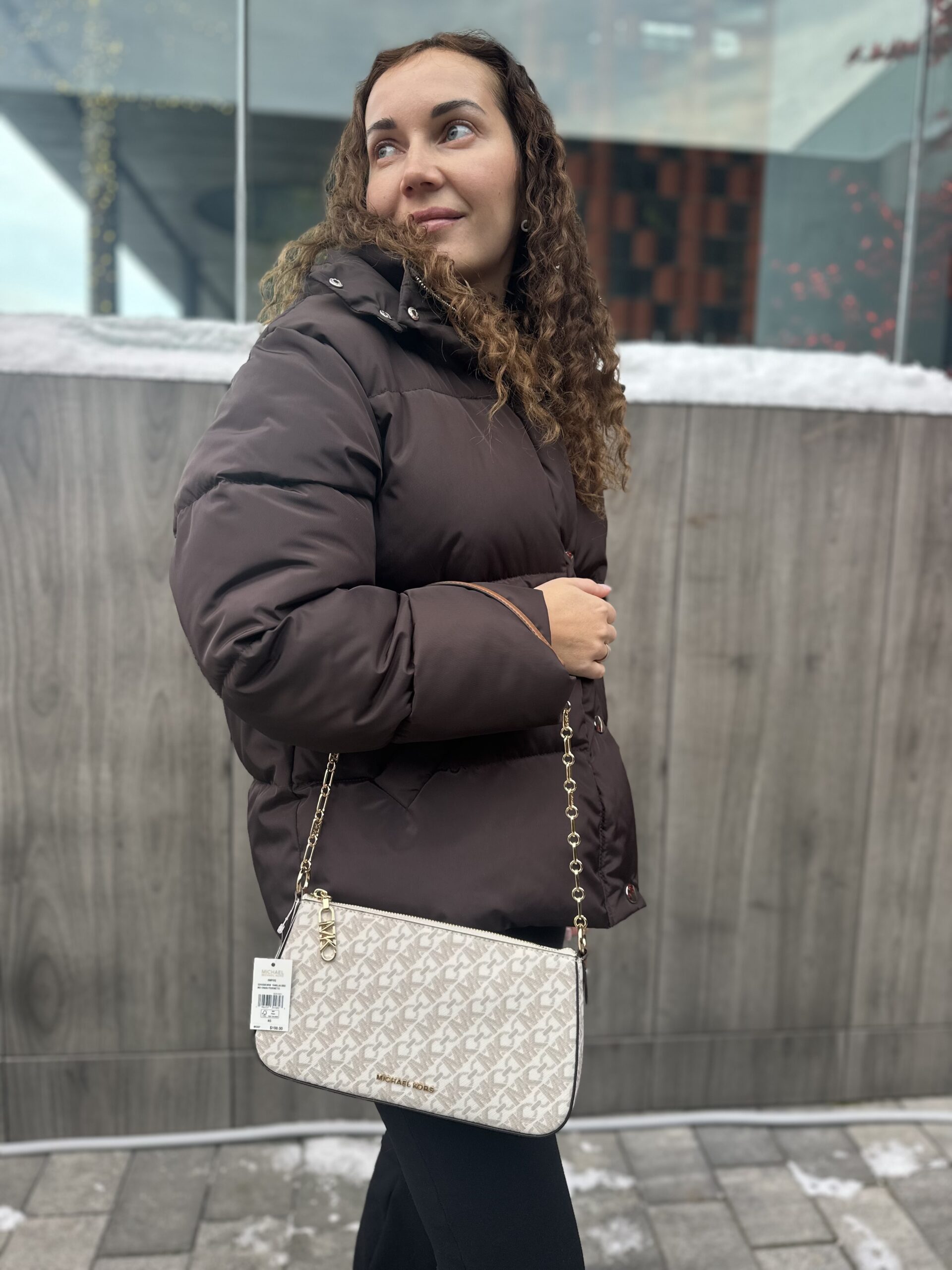 Empire Medium Chain-Link Pochette – жіноча сумочка Michael Kors з ексклюзивним ванільним логопринтомНаявність: 1 в наявності