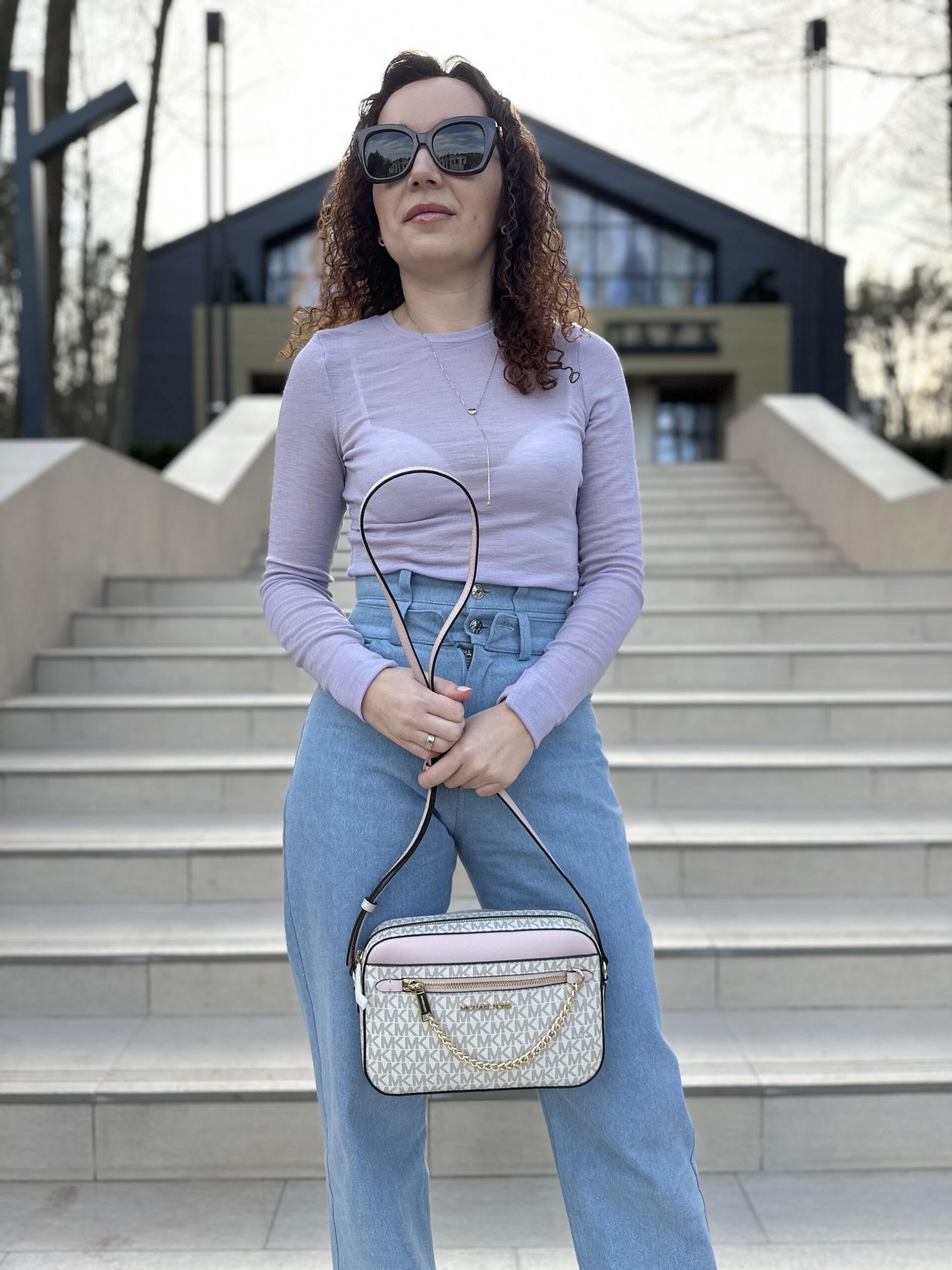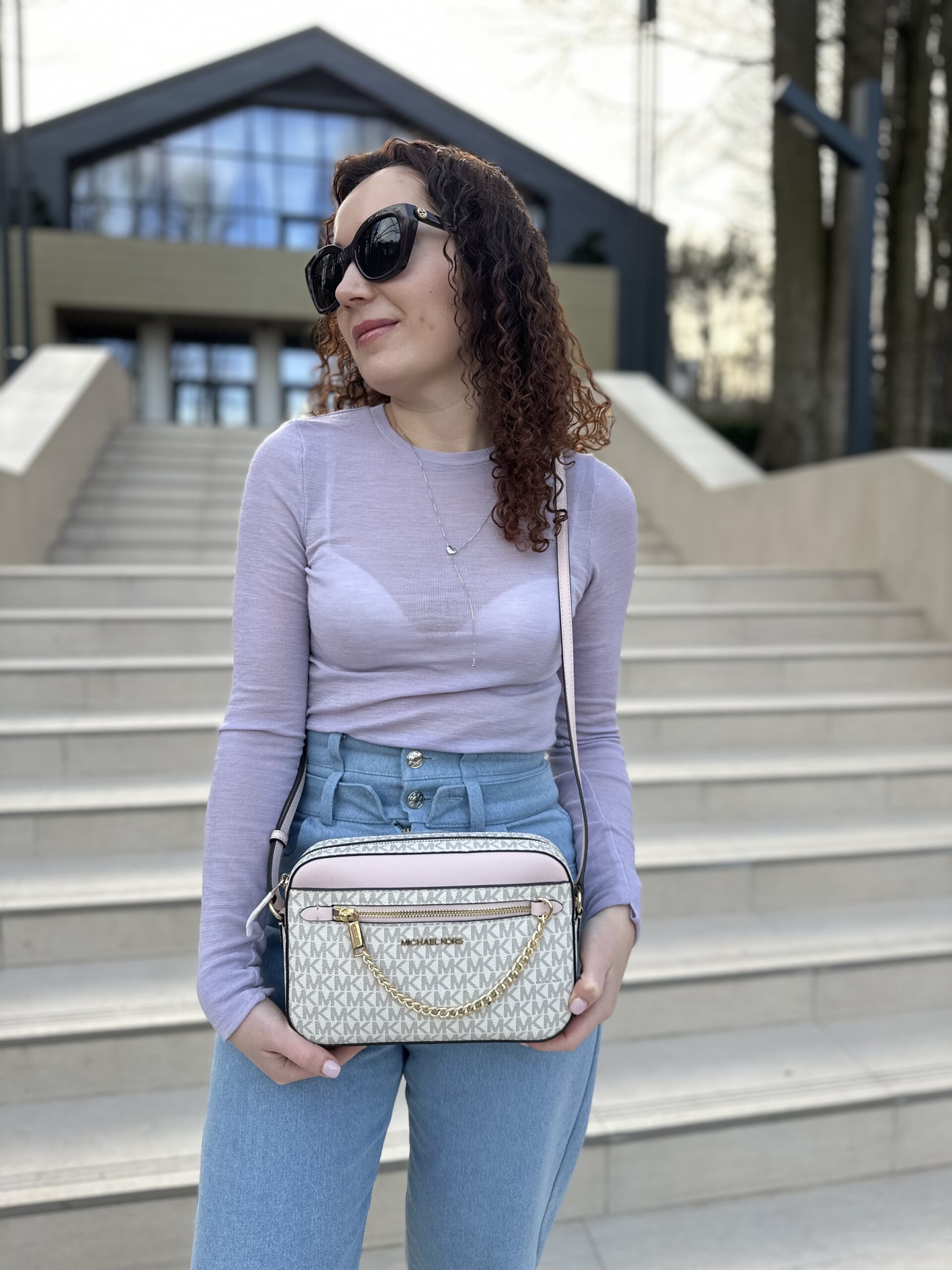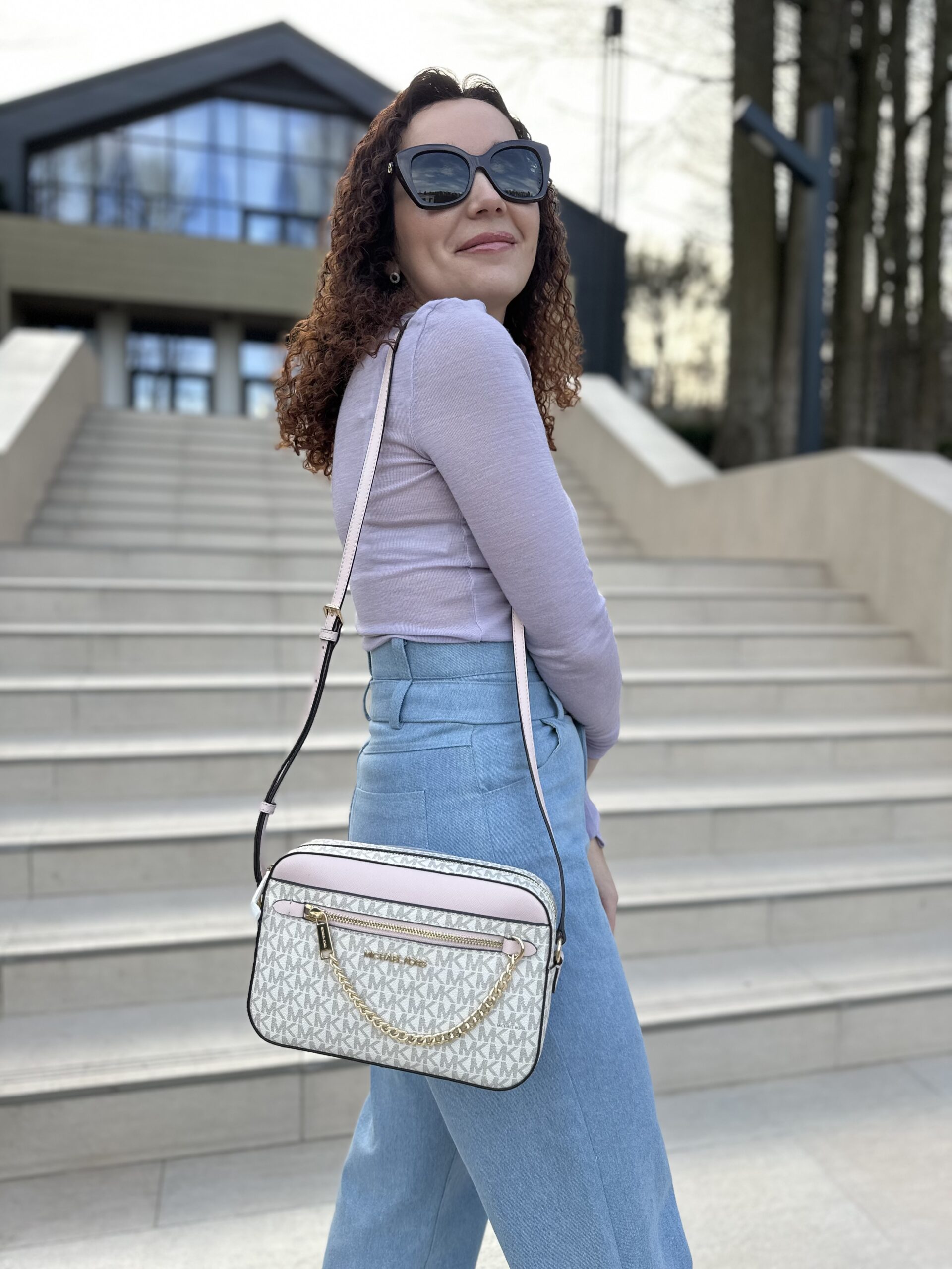 Jet Set Large Logo Crossbody Bag у кольорі Powder Blush – жіноча сумочка Michael Kors