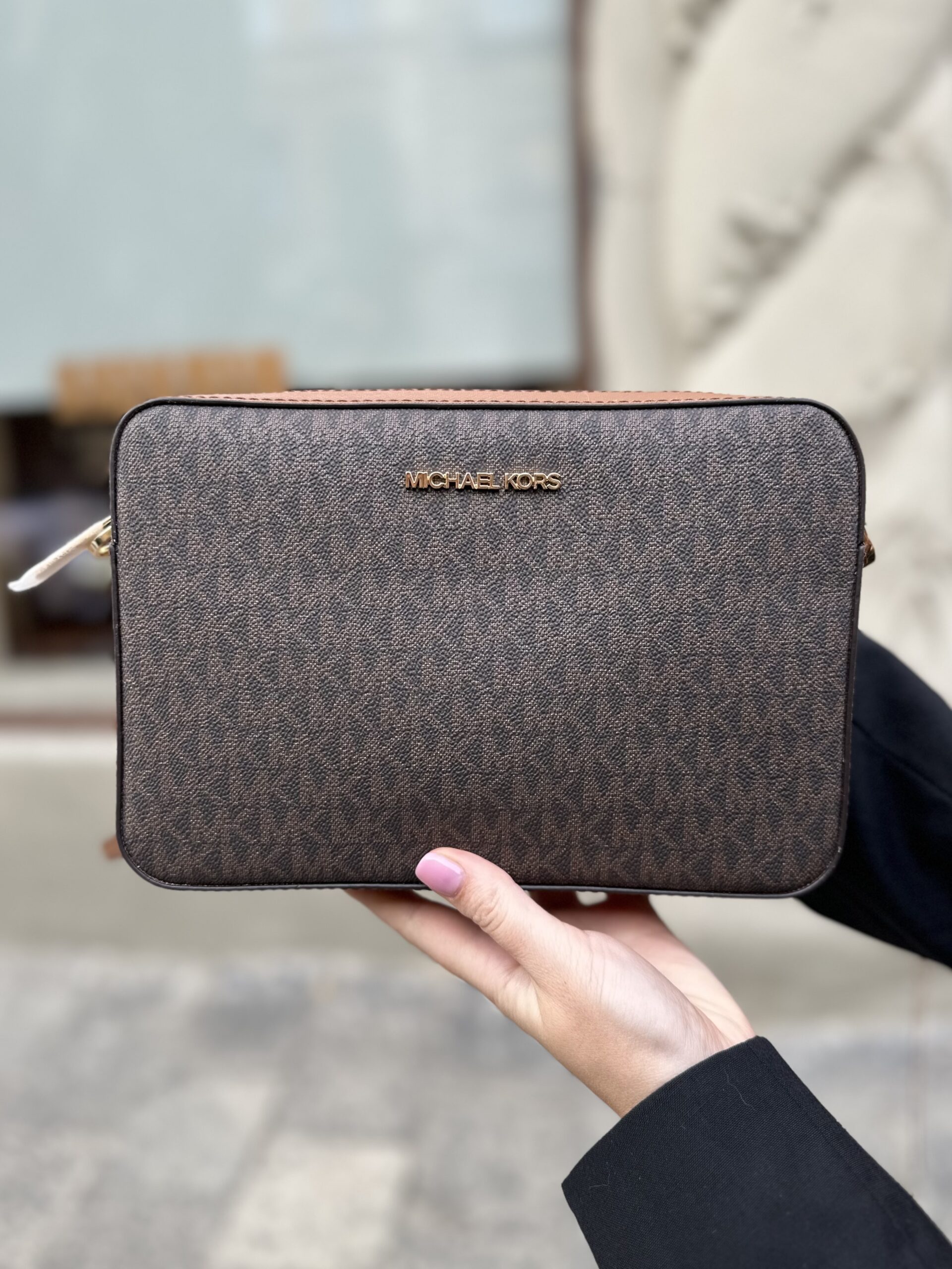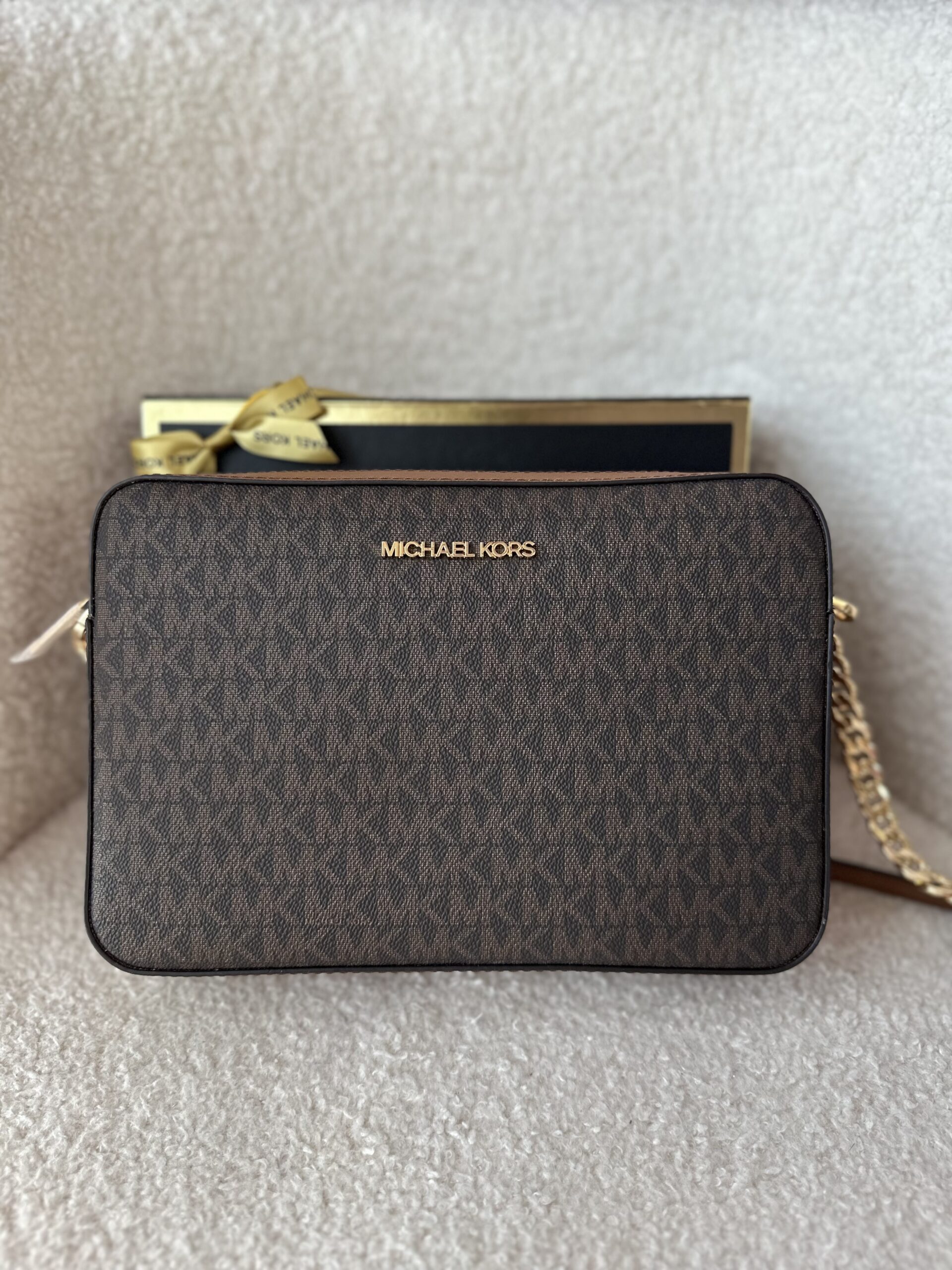Jet Set Large Printed Logo Crossbody Bag у кольорі Brown Logo – жіноча сумочка Michael Kors