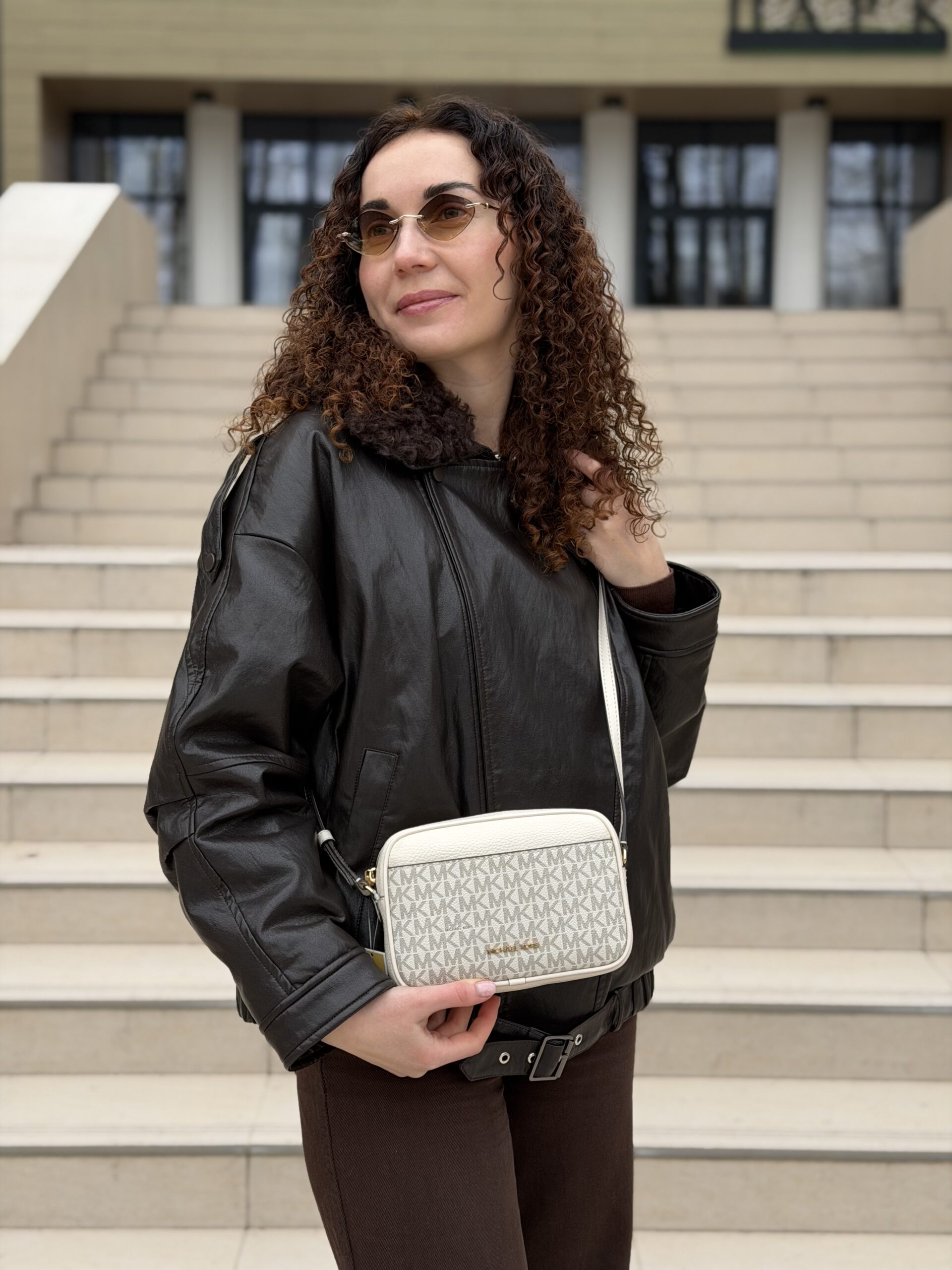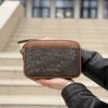 Jet Set Small — компактна сумка-кросбоді у форматі camera bag з логотипним принтом. Витончений силует доповнений золотистою фурнітурою та зручним регульованим ременем. Завдяки внутрішній та зовнішній кишеням вона забезпечує функціональність і комфорт у щоденному використанні.