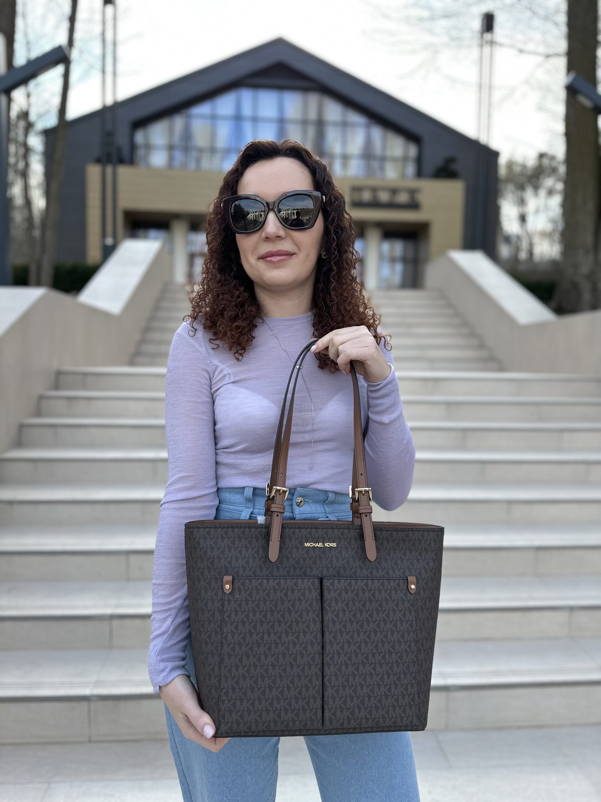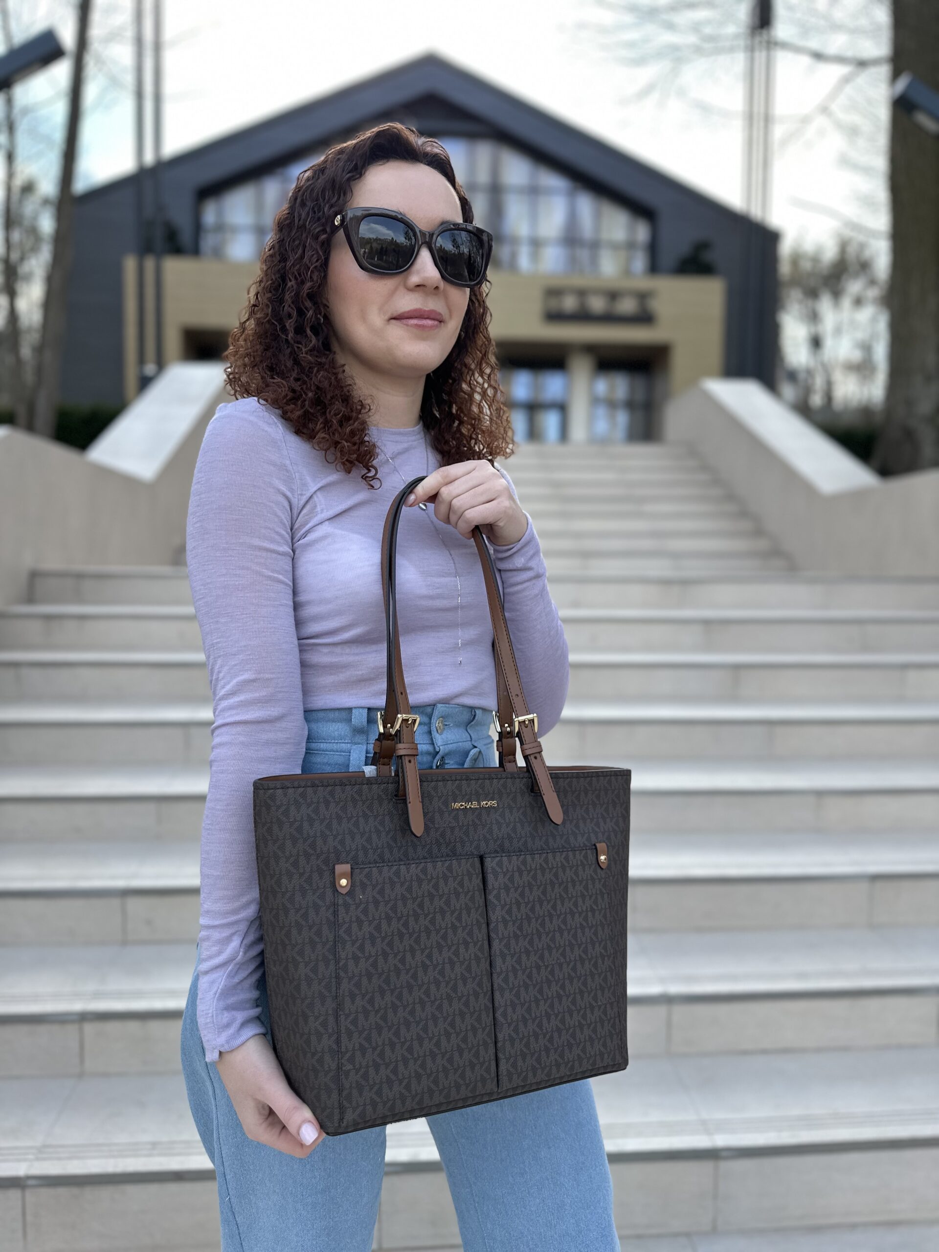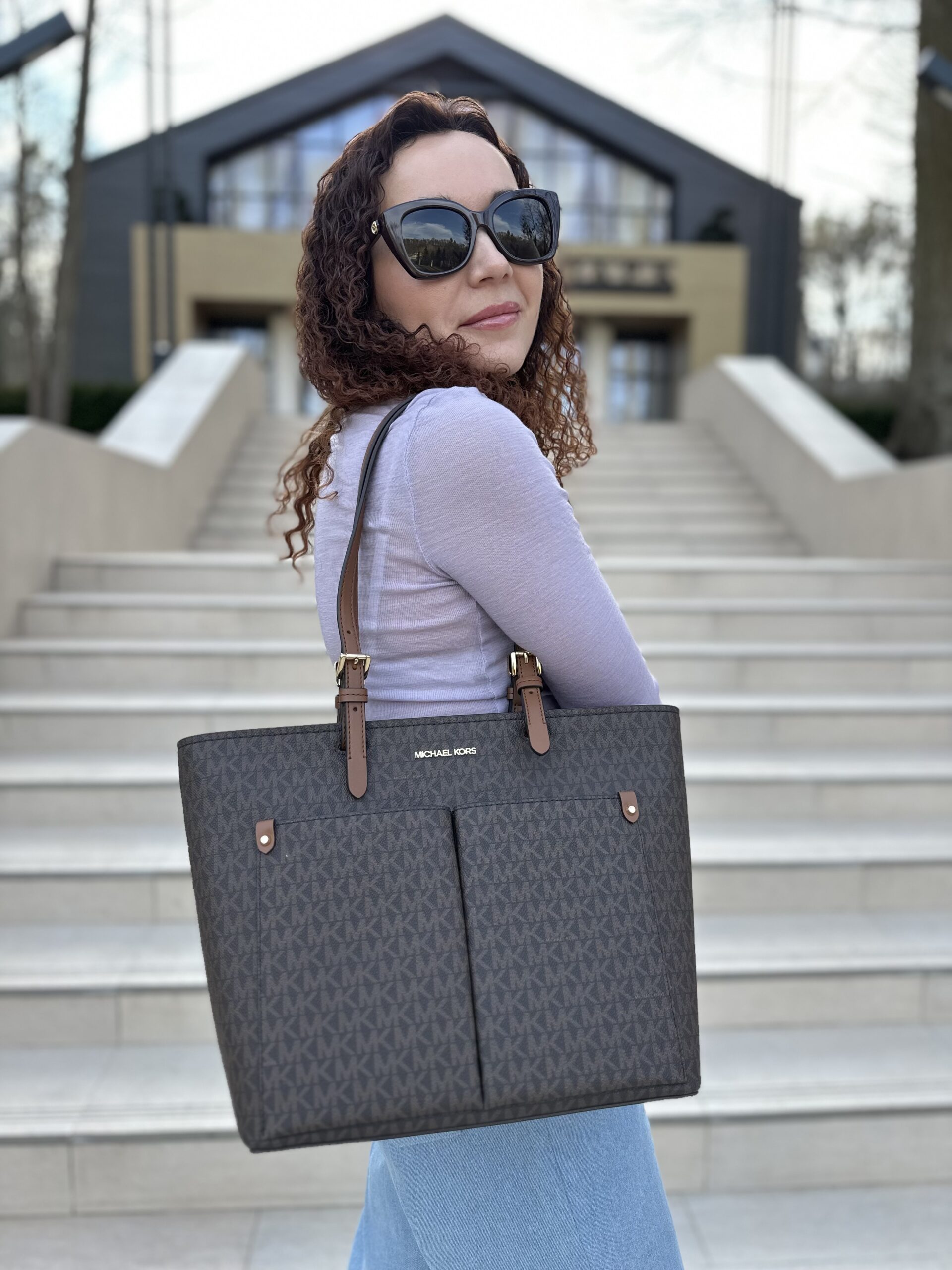 Jet Set Medium Logo Pocket Tote Bag у кольорі Brown Logo – жіноча сумочка Michael Kors