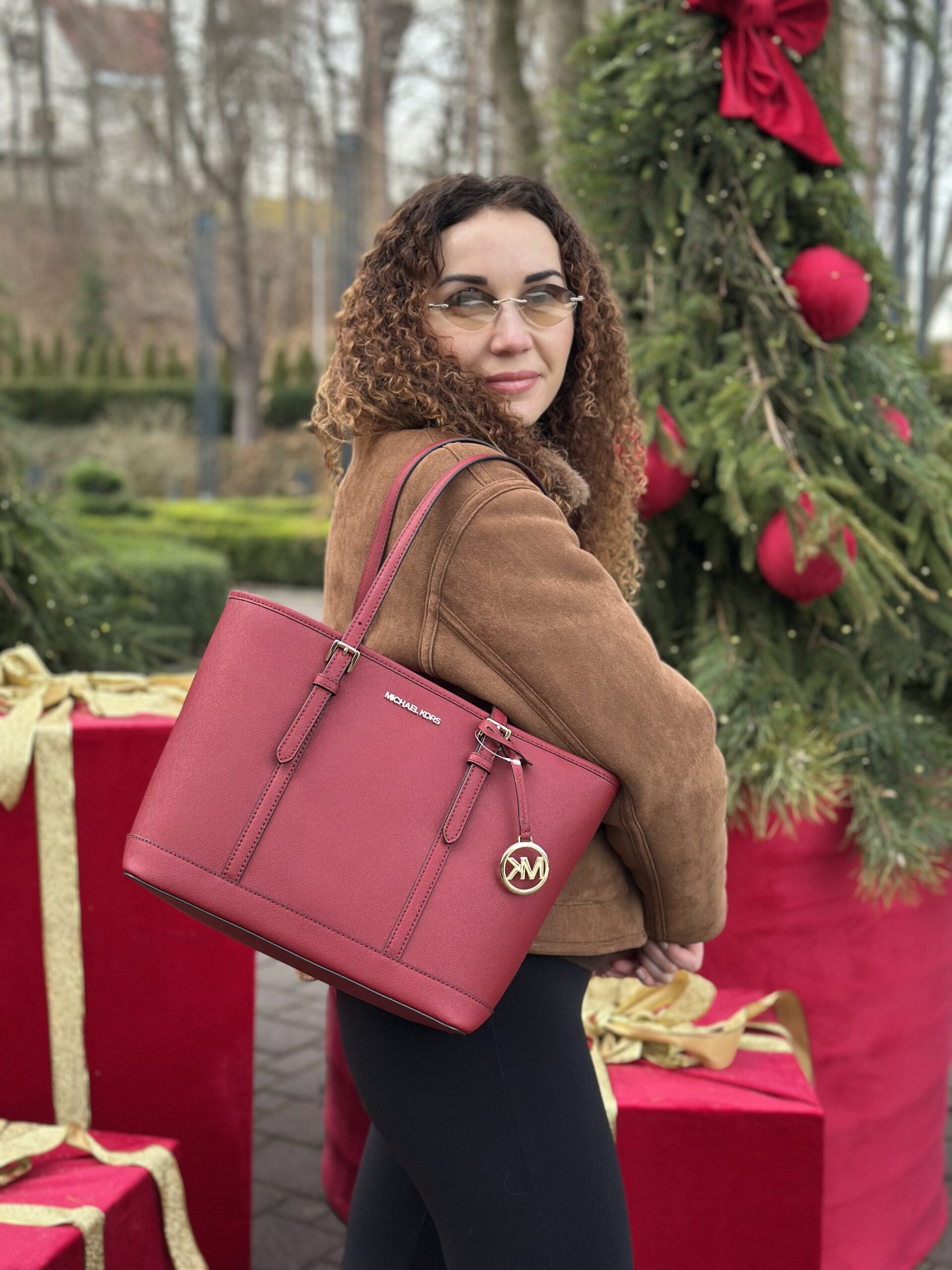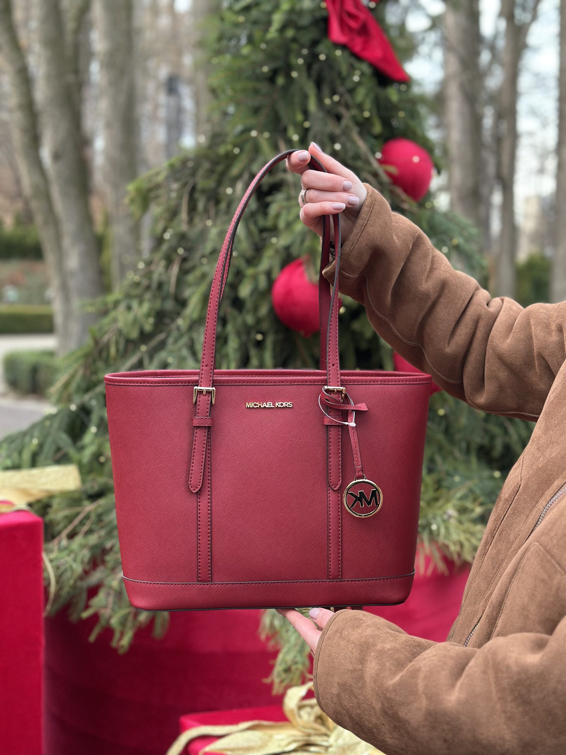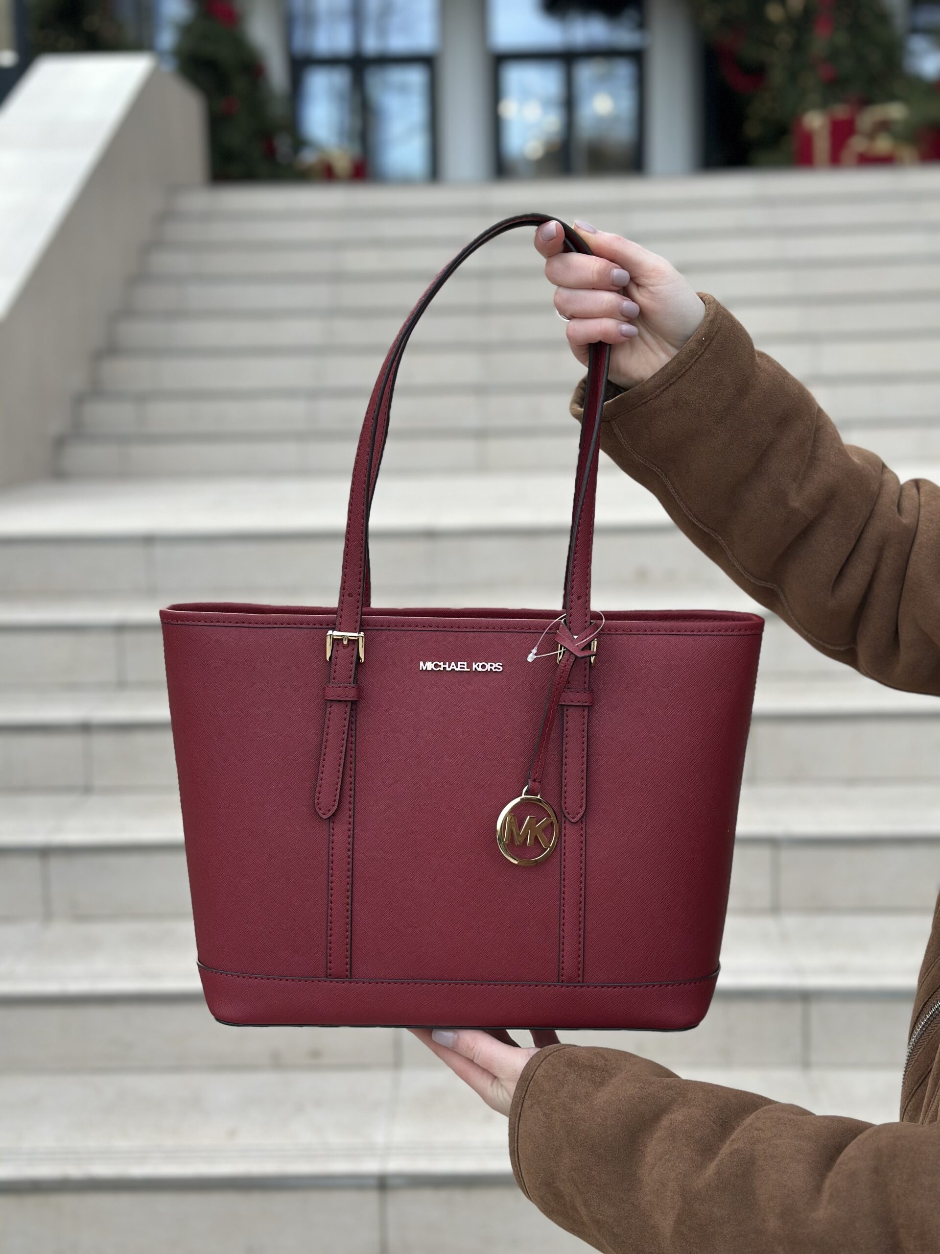 Jet Set Travel Small Saffiano Leather Top-Zip Tote Bag у кольорі Cherry – жіноча сумочка Michael Kors