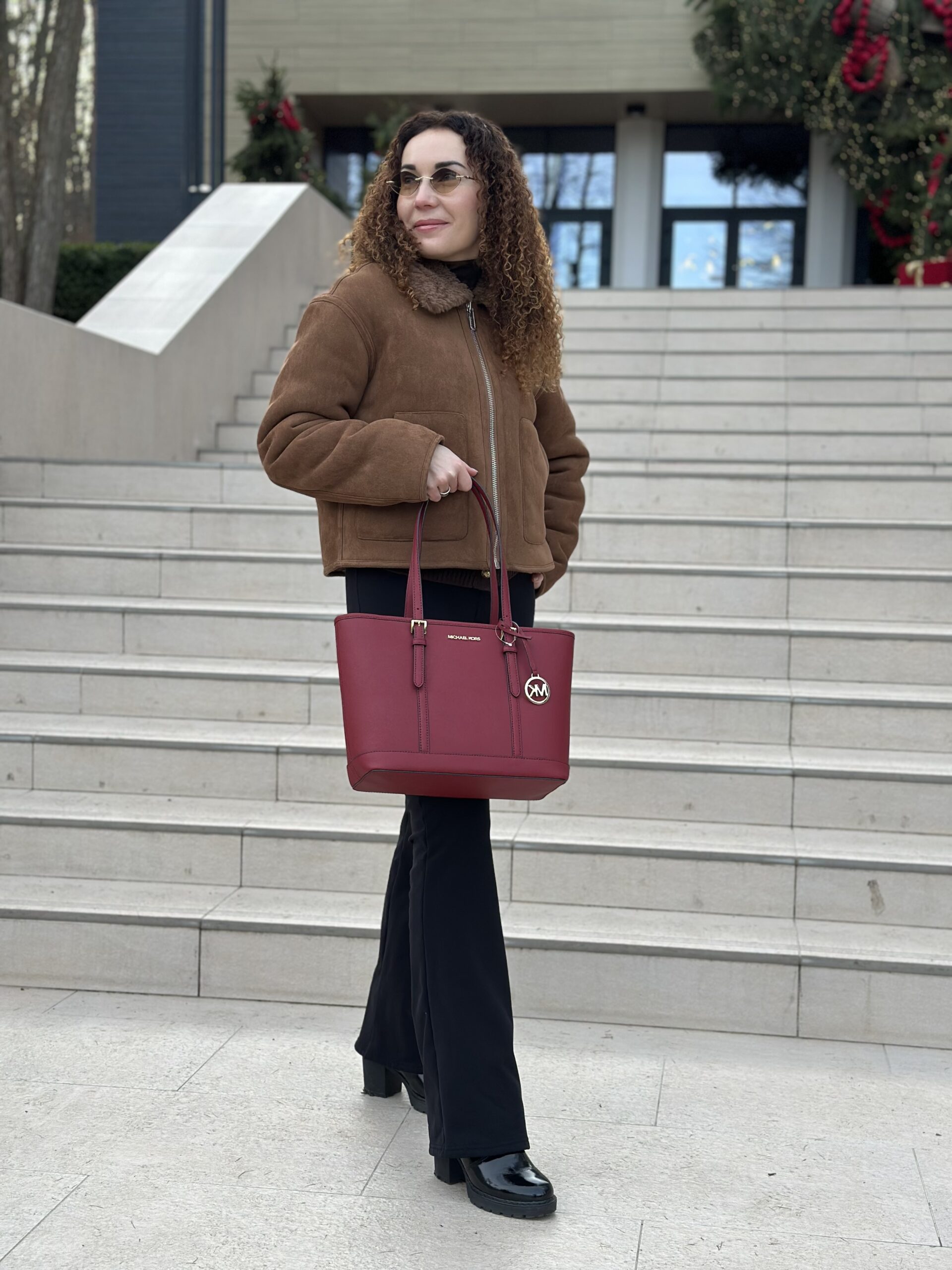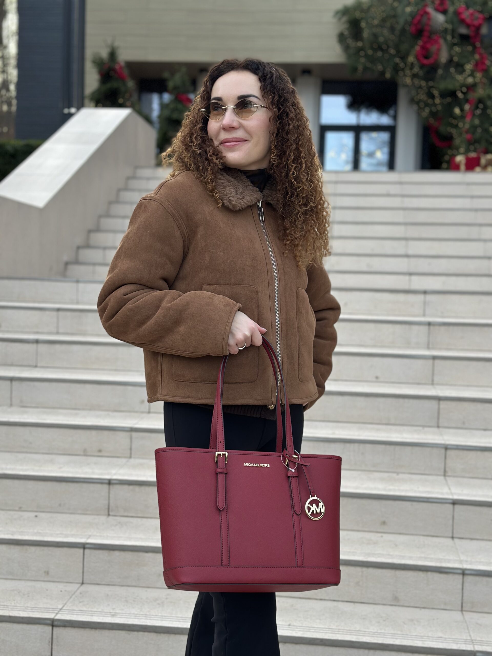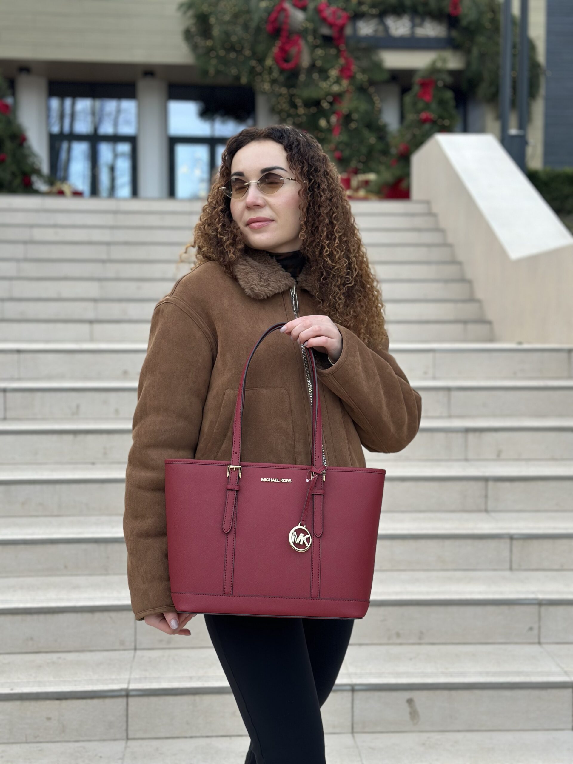 Jet Set Travel Small Saffiano Leather Top-Zip Tote Bag у кольорі Cherry – жіноча сумочка Michael Kors