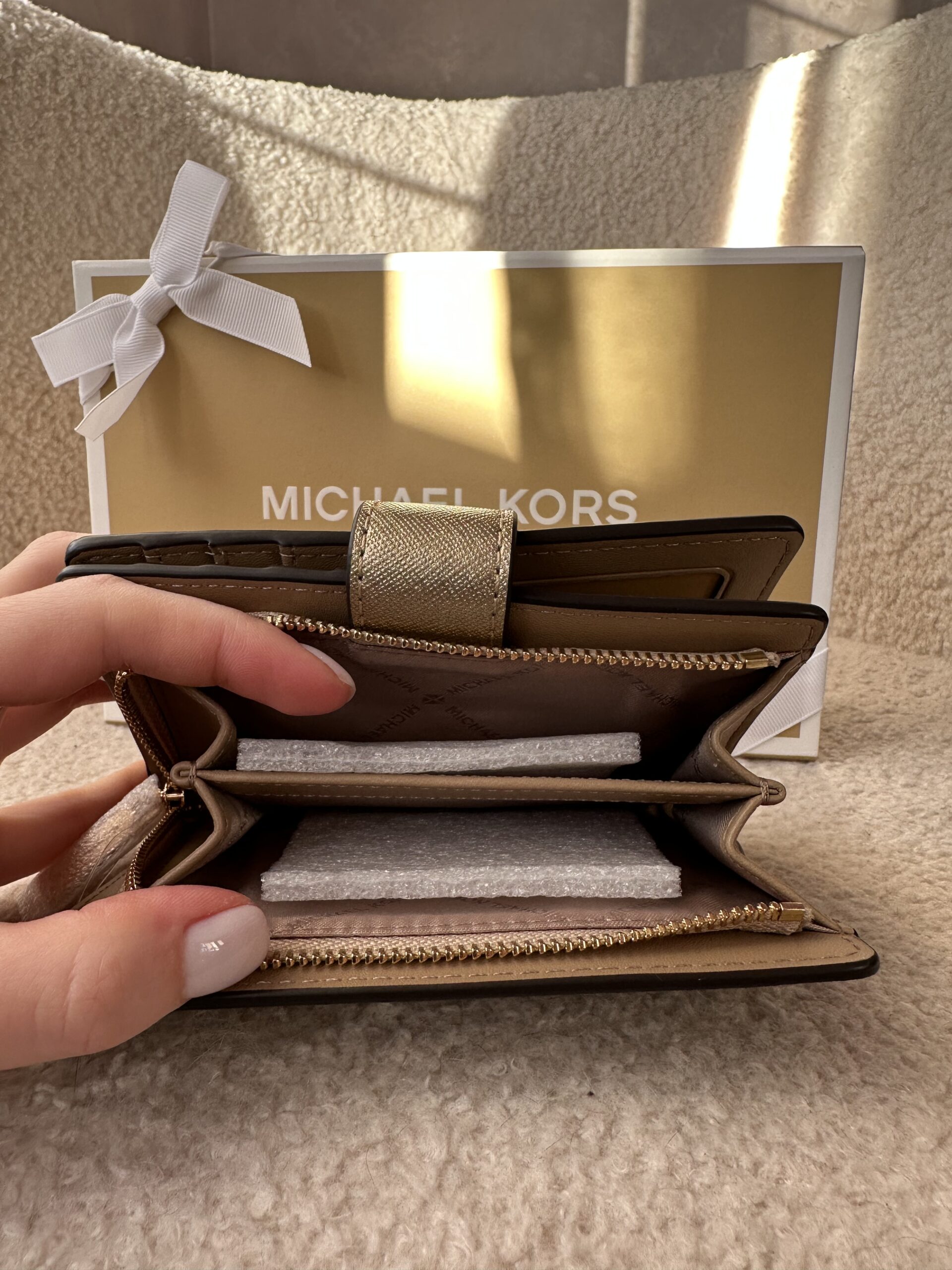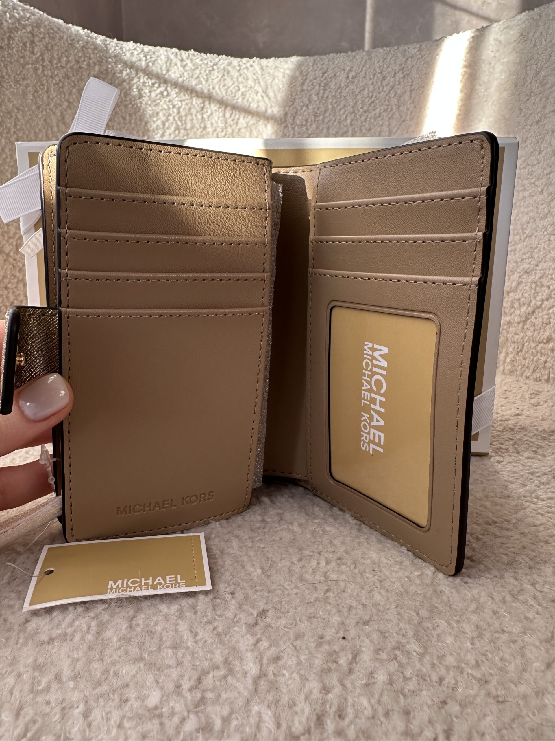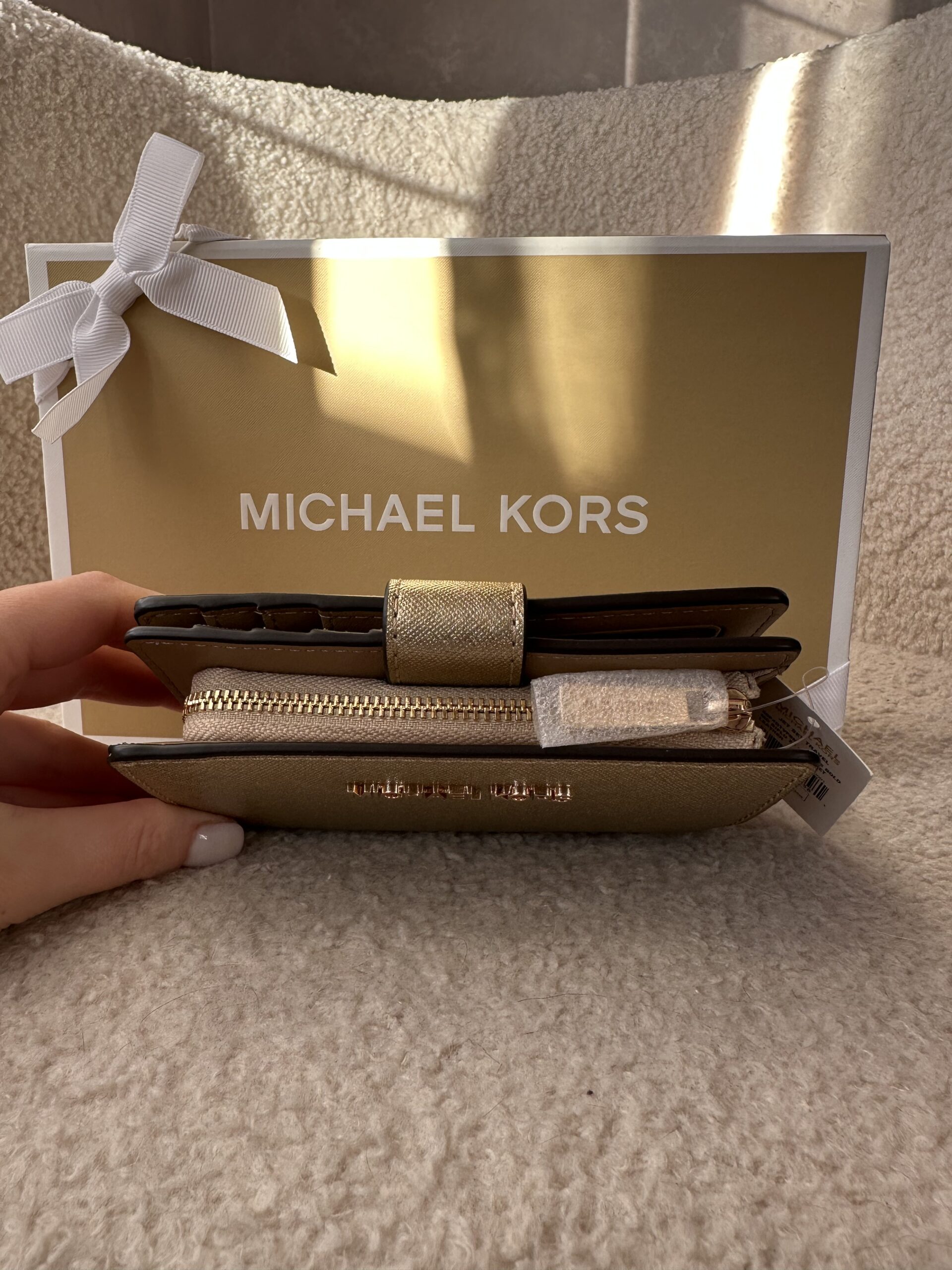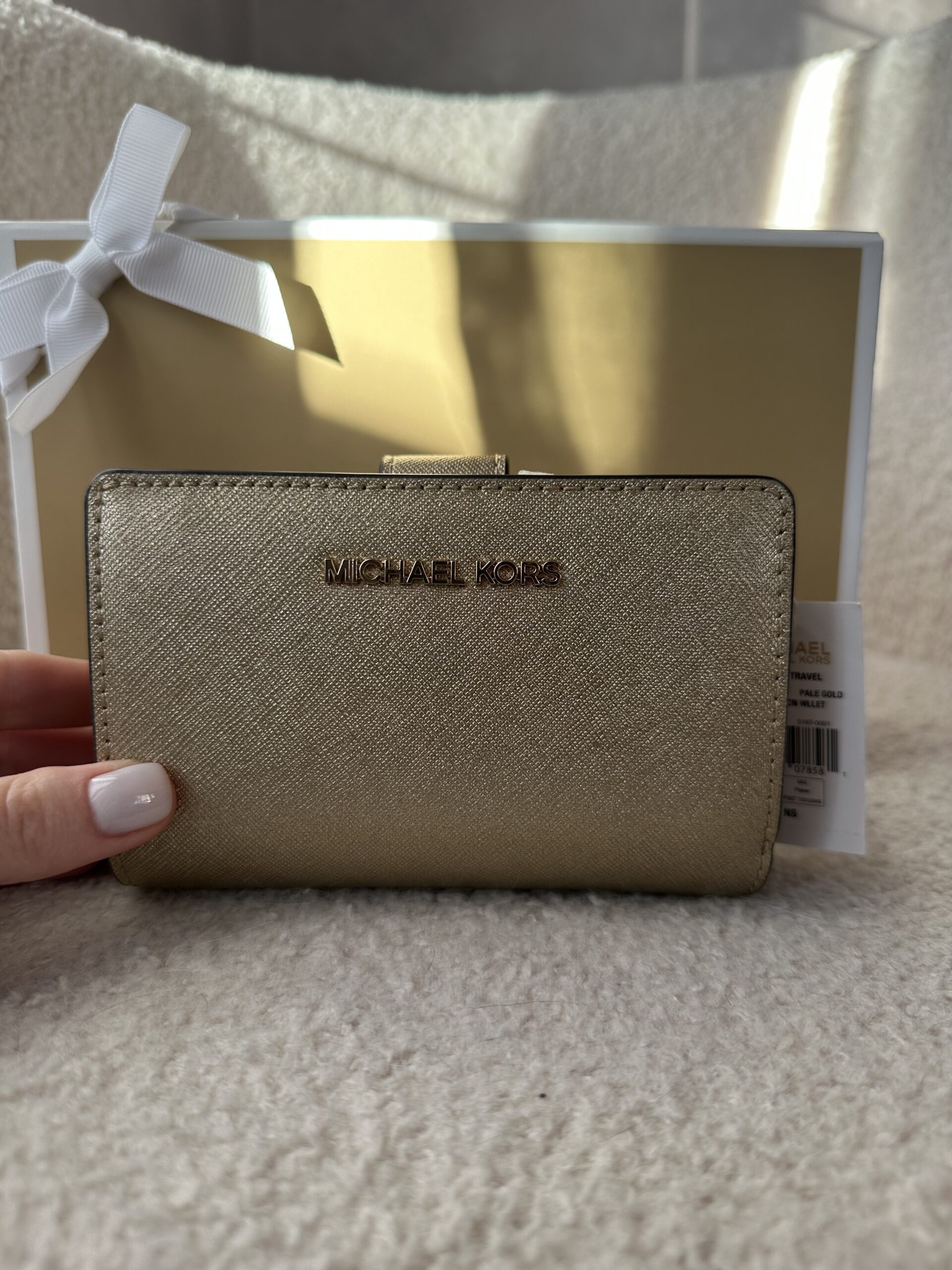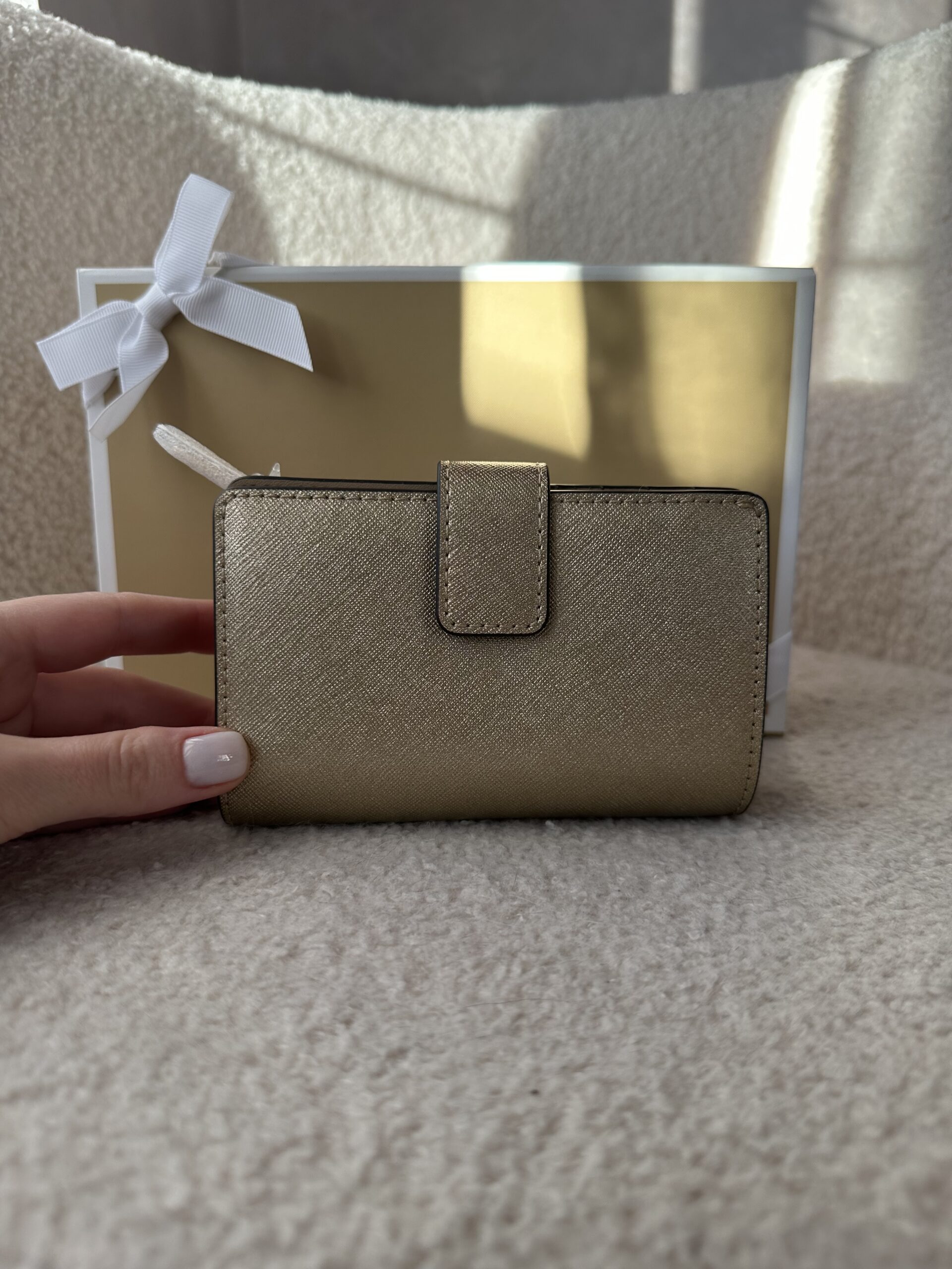 Jet Set Medium Metallic Saffiano Leather Bi-Fold Wallet Pale Gold – жіночий гаманець Michael Kors