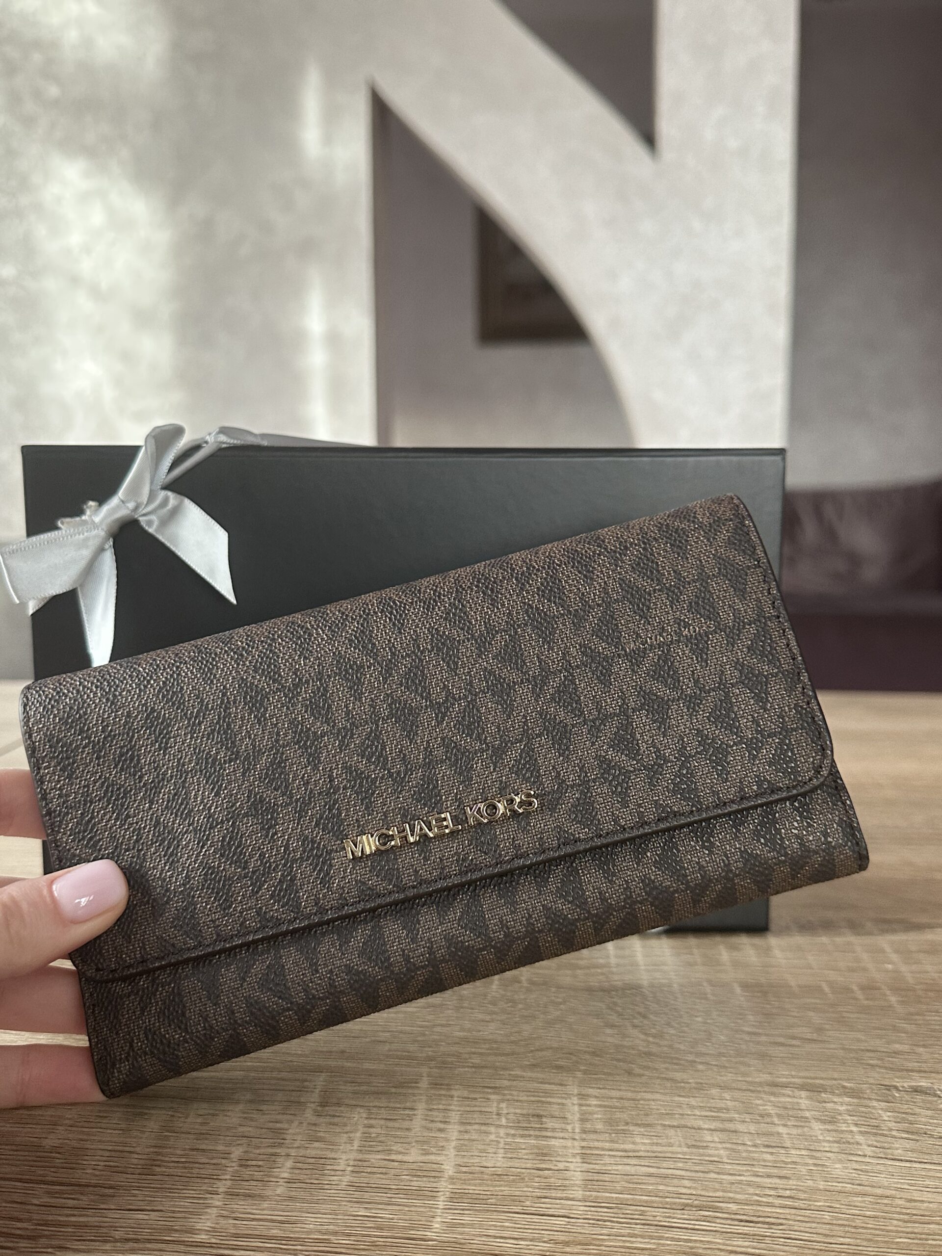 Jet Set Large Logo Trifold Wallet Brown – жіночий гаманець Michael KorsНаявність: 1 в наявності