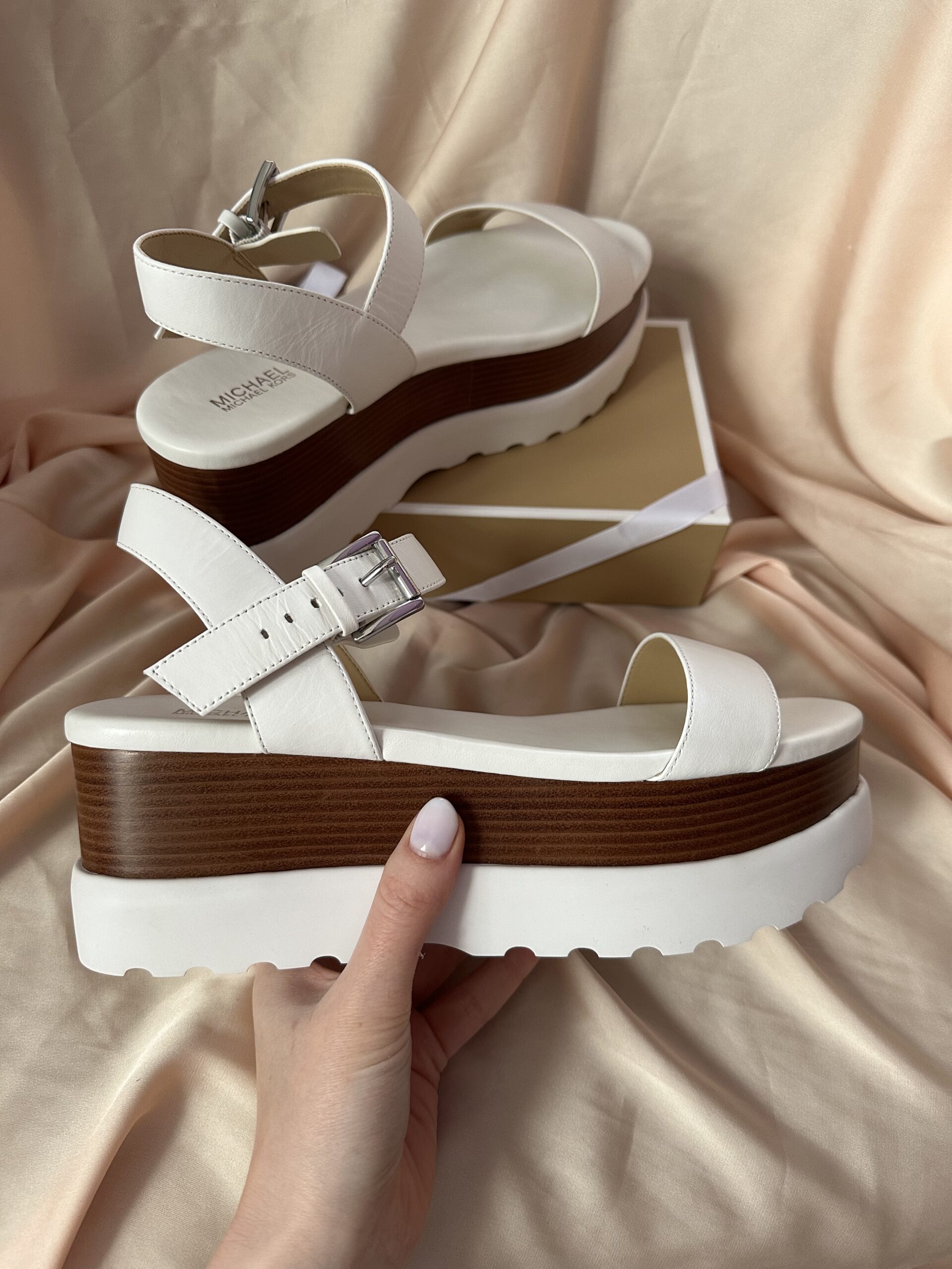 Marlon Leather Flatform Sandal Optic White - жіночі босоніжки Michael KorsMarlon Leather Flatform Sandal Optic White – жіночі босоніжки Michael Kors