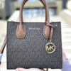 Mercer Medium — класична кросбоді-сумка з логотипним принтом та шкіряними вставками, доповнена боковими складками-«акордеон». Структуровані ручки та знімний ремінь через плече додають універсальності, а центральне відділення на блискавці забезпечує надійне зберігання дрібних речей.