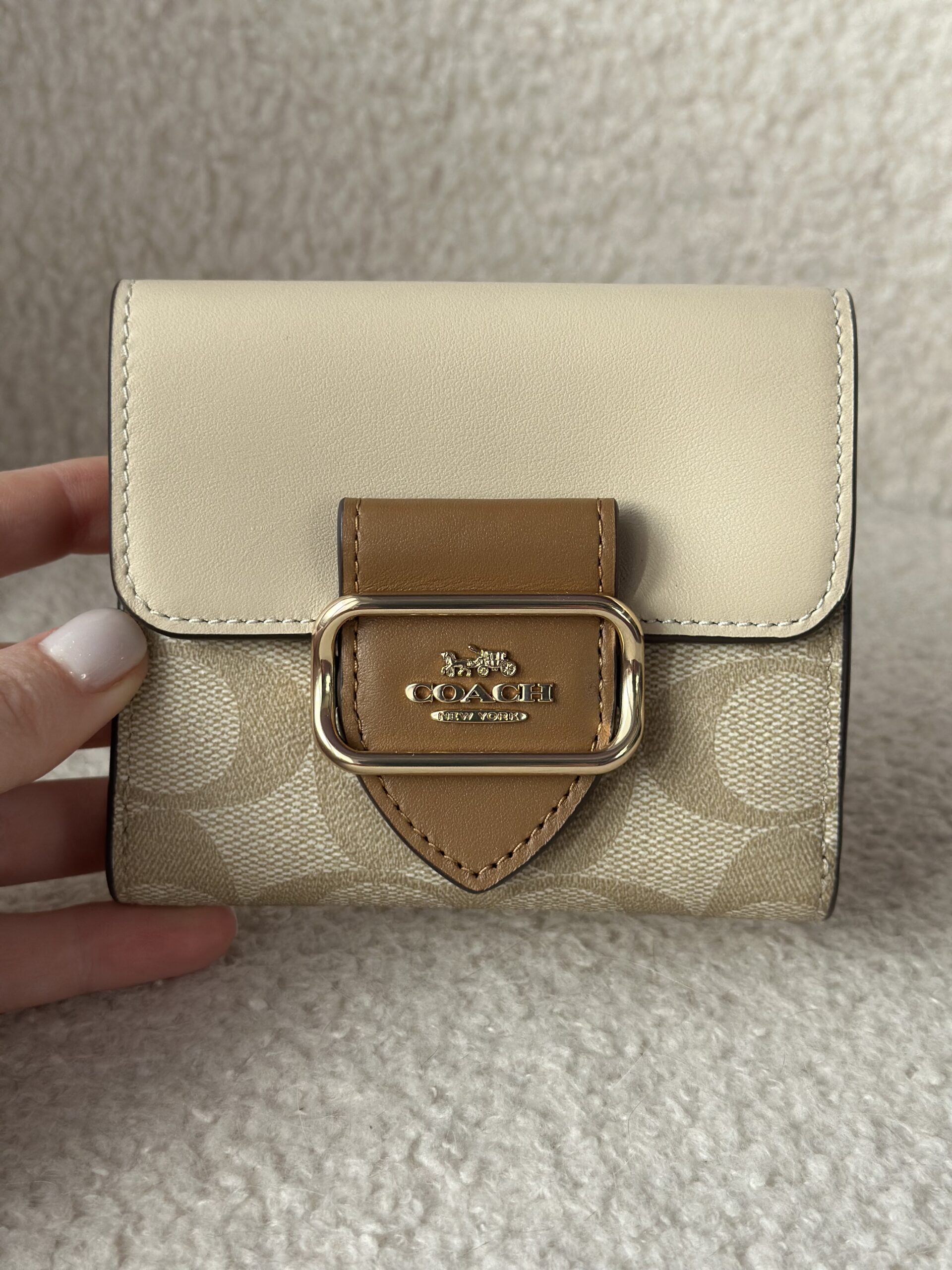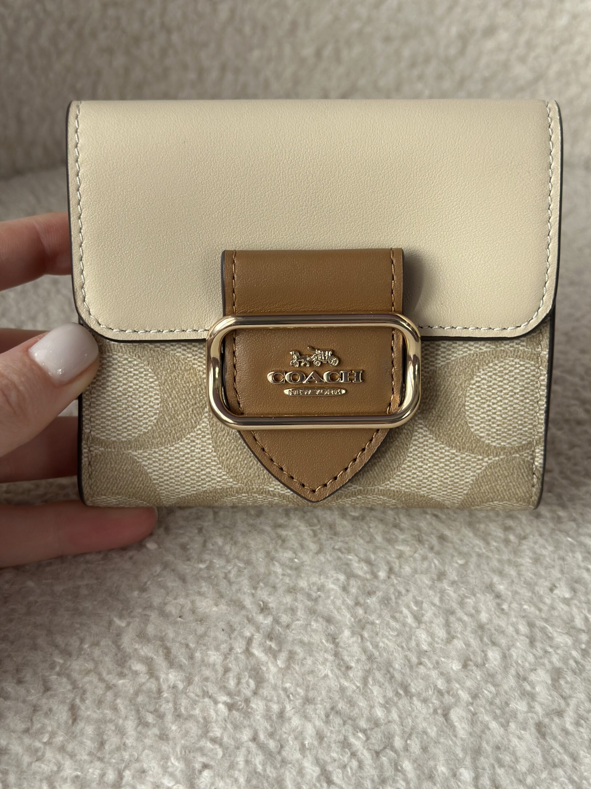 Small Morgan Wallet in Blocked Signature Canvas Light Khaki Multi – жіночий гаманець Coach
